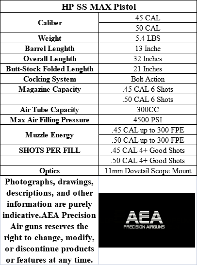 AEA Precision Airgun Bigbore .357 .45 .50.510Cal LS